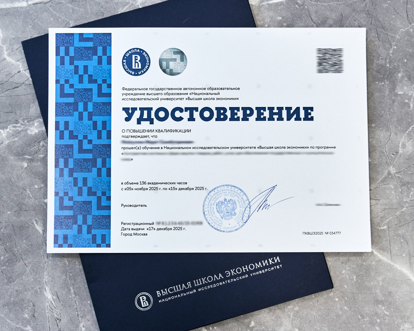 По итогам обучения выдается диплом о профессиональной подготовке и/или удостоверение о повышении квалификации НИУ ВШЭ (г. Москва). Информация о полученном выходном документе, передается в Федеральную информационную систему «Федеральный реестр документов об образовании и квалификации (ФИС ФРДО)»